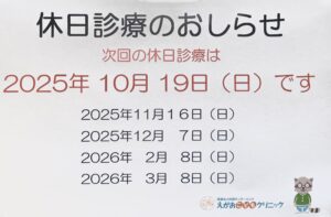 10月19日(日)は板橋区休日診療を9-20時で行います。